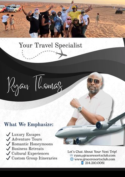 At Grace Resorts, our passion for travel is rooted in connection and bringing people together through purpose-driven experiences that go beyond the ordinary. What started as a dream to create transformational journeys has grown into a thriving agency specializing in group travel and corporate retreats that inspire, empower, and give back.